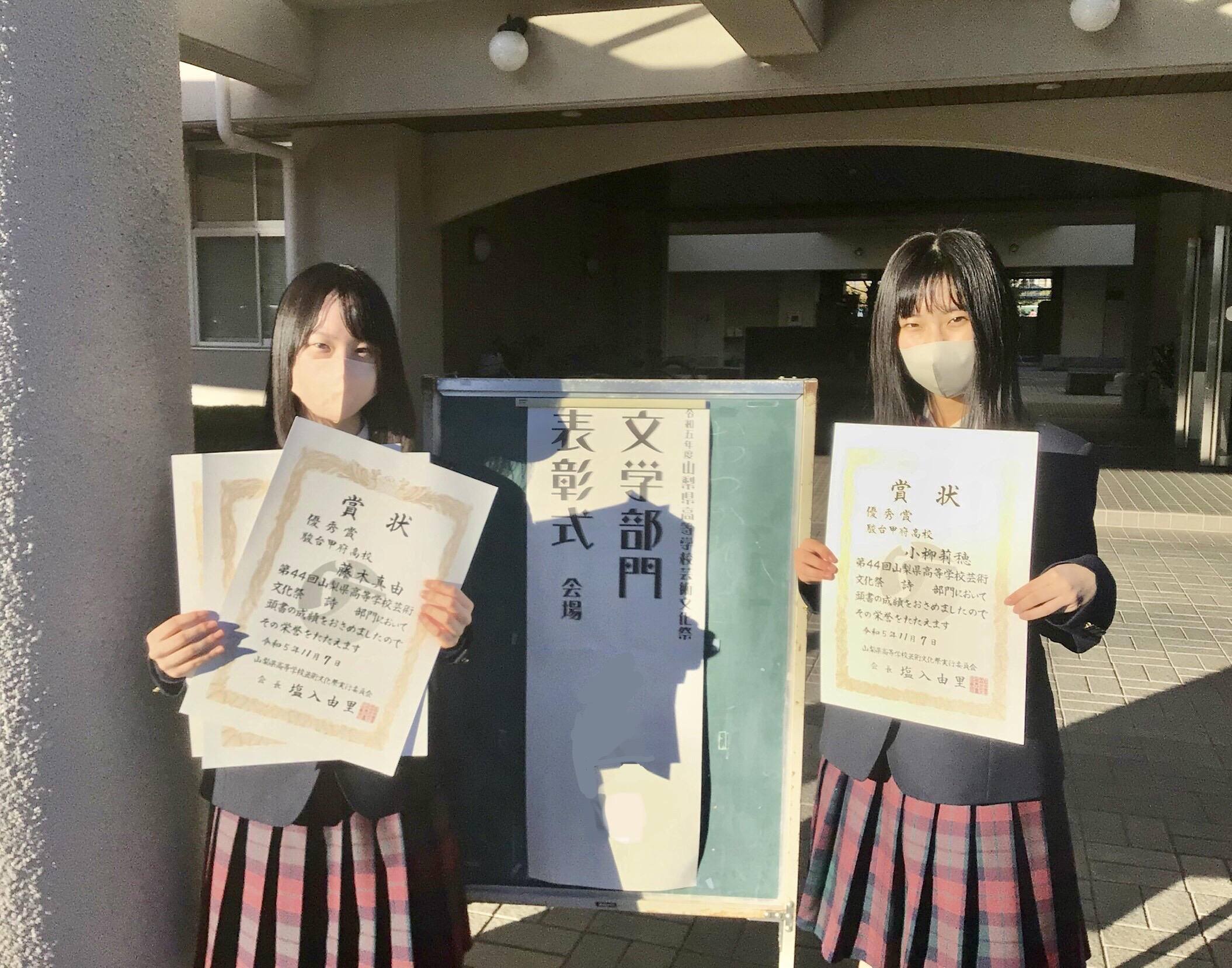 | 県大会 | ○第44回山梨県高等学校芸術文化祭 文学部門大会 詩部門 優秀賞 |