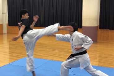 空手道部は「文武不岐」をモットーに、心技体を鍛錬しています。稽古内容を工夫して短時間でも効果的な練習を行い、部活と学業の両立を図っています。小中学生からの経験者や有段者もいますが、高校からの初心者の方が多いです。空手というものを通して、何事もあくまでも基本を大切に素直に取り組む姿勢を身につけたいと考えて稽古しています。